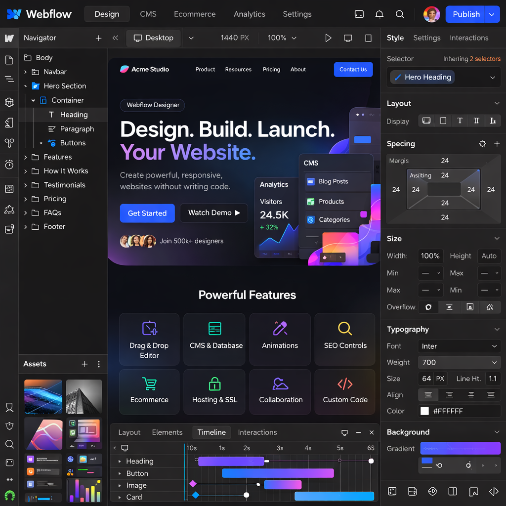 Webflow is a powerful platform used by designers and agencies to build advanced websites visually.